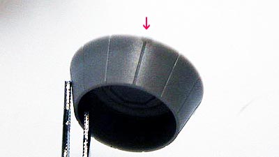 排気口部の、凹モールド上にゲート跡。スジ堀りしなければなりません。