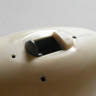 コクピットにプラ板を適当なサイズに切って、はりつけただけです。 その後あらためてニョートラルグレーで塗りました。 |